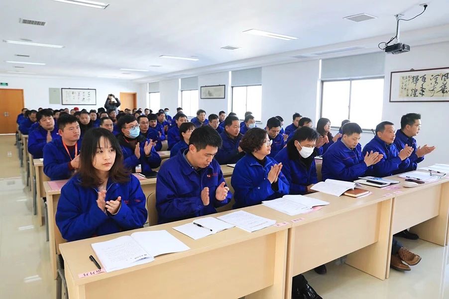 大會在嘹亮激越的《雙鳥之歌》歌聲中拉開帷幕。本次大會分四個階段,第一階段是宣布2021年度公司干部聘任文件,接著兩位新任干部代表作了慷慨激昂的發言。第二階段由財務總監王小英作財務年度報告,王總監的報告以詳實的數據闡明了2020年度雙鳥機械取得的不俗業績。第三階段進行誓師簽約,分別由盛總和三大營銷經理簽訂軍令狀,制造部經理張斌和各車間主任簽訂責任狀。立下軍令狀,吹響沖鋒號,東風吹,戰鼓擂,必將激勵雙鳥將士乘長風破萬里浪,高奏凱歌還。會議壓軸階段是領導講話。首先盛總作主旨發言。盛總在發言中回顧了不平凡的2020年,提出了2021年的目標,并對全體員工提出了安全第一、客戶至上、誠信正直、持續改善、顧全大局、團隊合作、不斷學習的要求。最后張董作重要講話。張董指出,一是非常之年取得非常之業。銷售利潤實現雙增長,公司成為中國重型機械工業協會副理事長。成績榮譽來之不易,難能可貴。二是不想當將軍的士兵不是好士兵。每個人都要敢于當頭,勇于爭先,不斷努力,出類拔萃。就像剛才簽下的軍令狀,簽下就要兌現,說到就要做到。三是要處理好安家立業這兩件人生大事。作為老板要選好產業,作為員工要選好行業,大家都要經營好各自事業和家庭。成家立業,安居樂業。張董最后希望大家互相學習,互相促進,互相提升,創造更大輝煌。